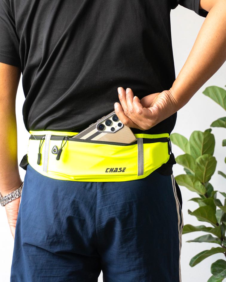 Stay light, run free. The Chase Running Belt keeps your phone, keys, and essentials secure with a slim, bounce-free fit built for runs, workouts, and everyday miles.